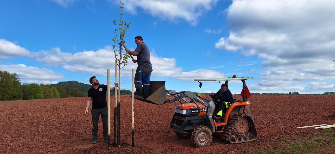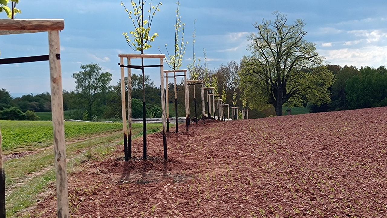 Místo, zatím takové docela bezútěšné, neuvěřitelně prokouklo. Je úžasné co může třináct stromů udělat s krajinou. Nádhera.